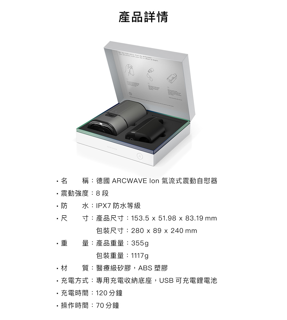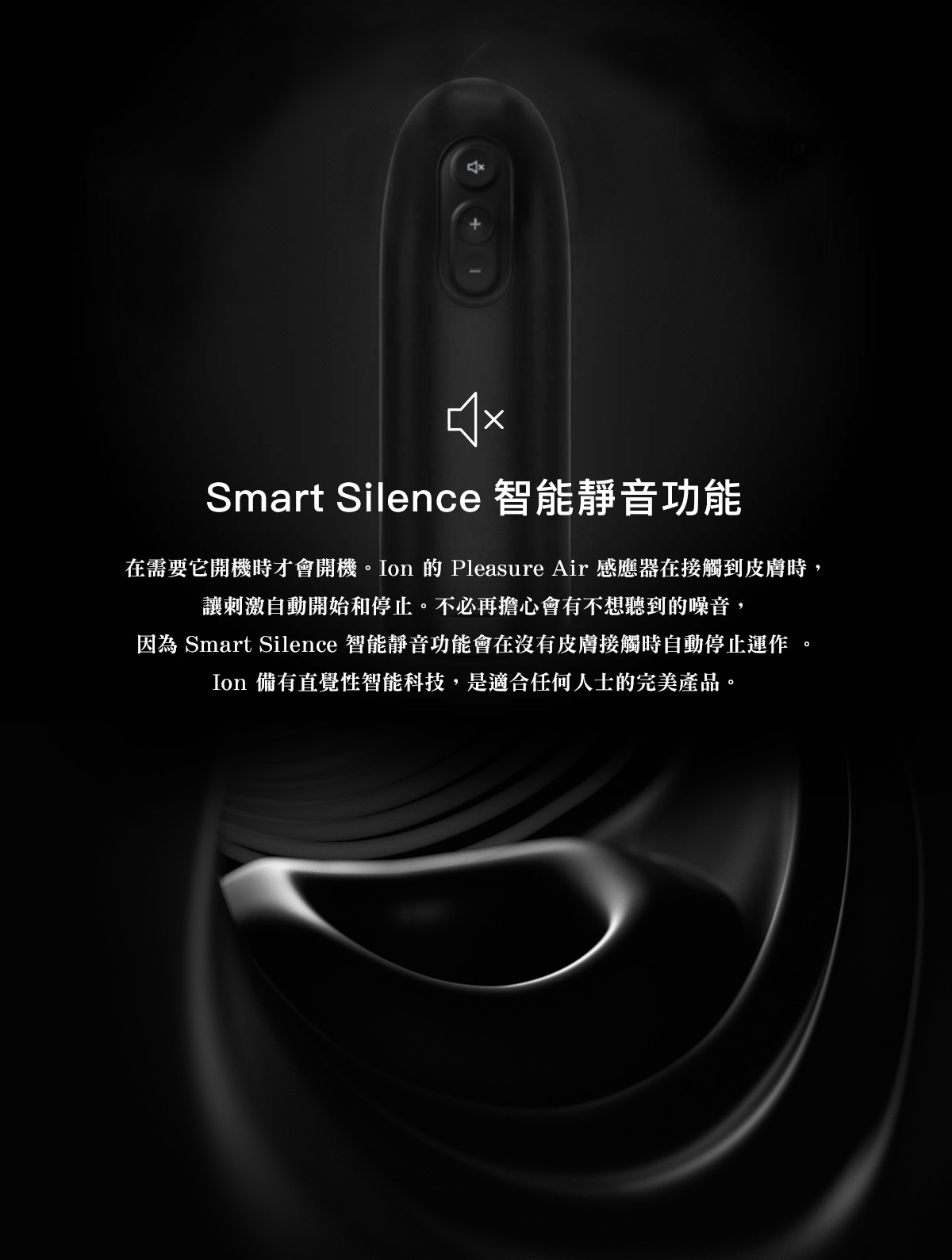 想像一個震動按摩棒,開啟以後就不停發出震動的聲音,是否覺得有點惱人?但卻有一種功能,當按摩棒觸碰到你的皮膚時,才會啟動震動,而離開肌膚時就會停止運作。這就是ARCWAVE ION的智能靜音技術,當你啟動開關後,並按上智能靜音鍵,當你每次往下讓底部感應器接觸到肌膚時,氣流震動杯就會運作吸淬,而離開時便會停止運作,減少惱人的噪音卻不讓陰莖的感受降低。