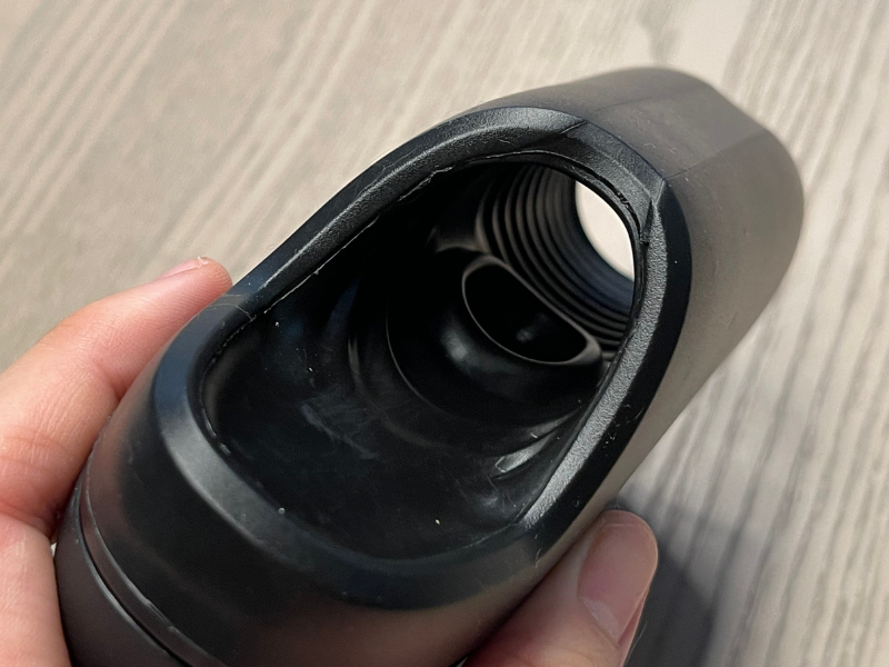 氣流震動飛機杯的構成:半邊的空氣吸淬運作與半邊的空心潔淨矽膠,此種矽膠觸摸不會感到不適,高密度不粗糙,並很與生物兼容,簡單來說你的性器官表面接觸不會感到不舒服,更是醫療級的矽膠,在清潔時只需要透過清水便能輕易洗淨,不會藏污納垢,防水等級IPX7,全機可沖洗,當然也代表浴缸、淋浴間都是你可以使用的地方。