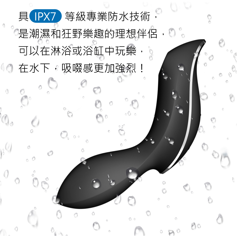 具 IPX7 等級專業防水技術, 是潮濕和狂野樂趣的理想伴侶,可以在淋浴或浴缸中玩樂,在水下,吸啜感更加強烈!