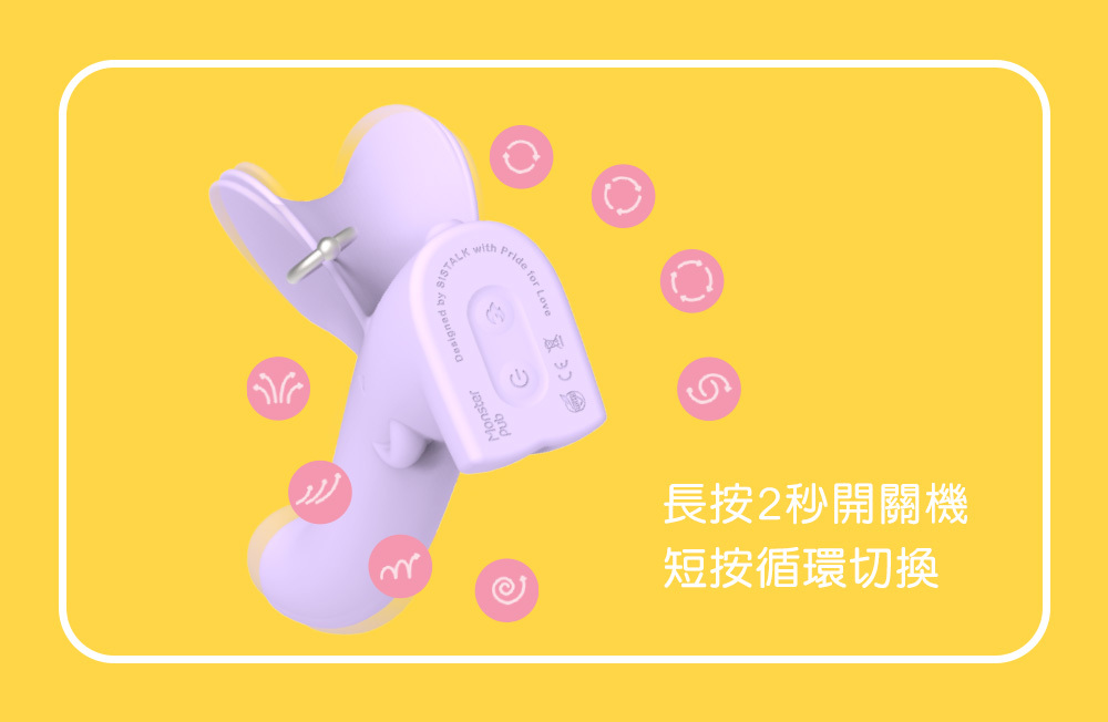 操作萌瑪象非常簡單,僅有兩顆鍵,長按兩秒啟動,短按開關鍵是切換頻率,在長按兩秒關機。