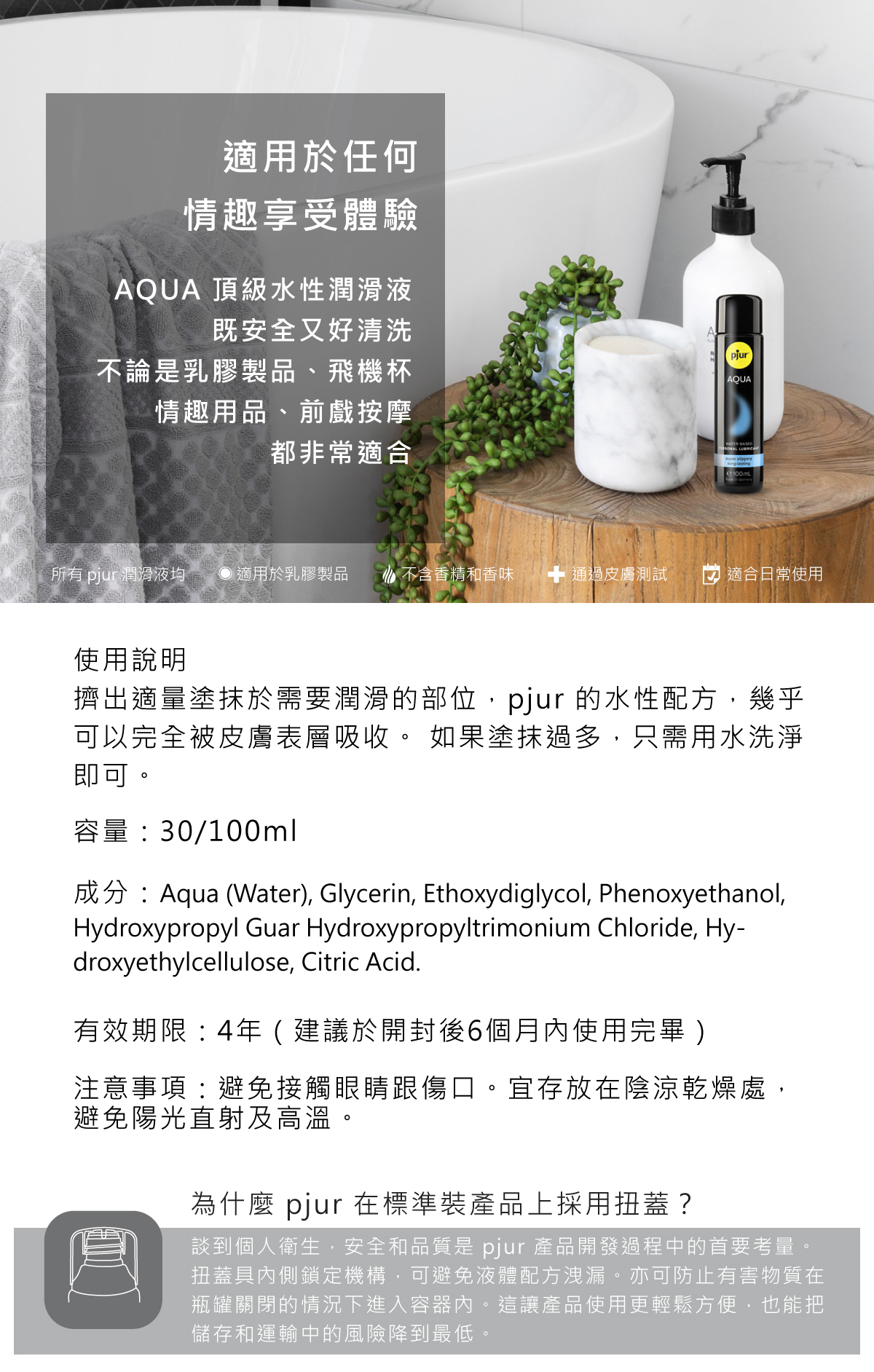 • 超長效的水溶性潤滑液配方