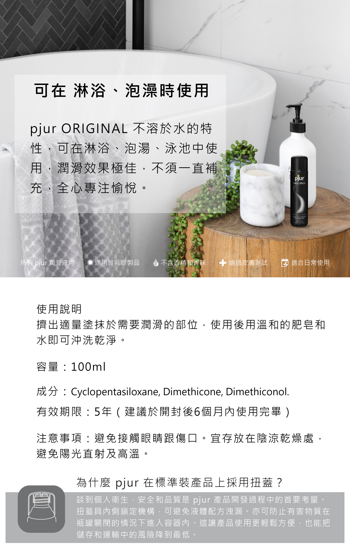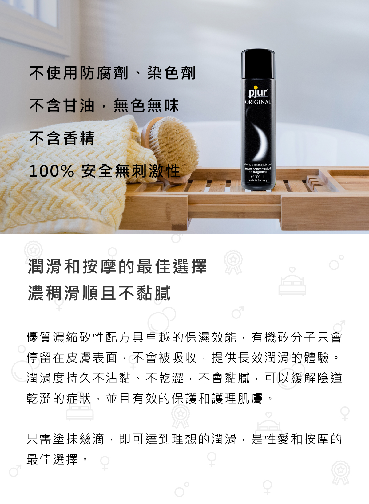 • 不含防腐劑、無甘油、無色無味