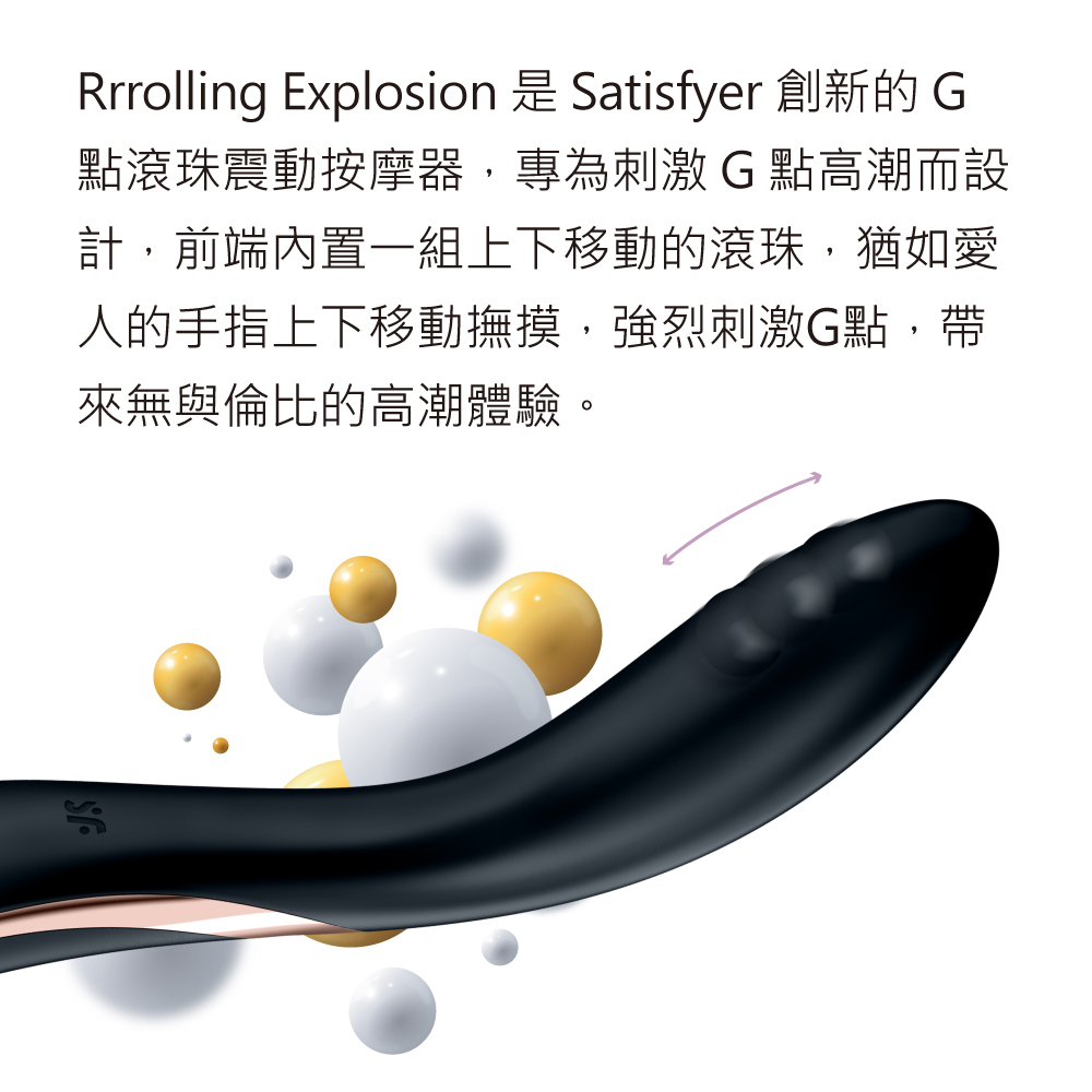 Rrrolling Explosion 是 Satisfyer 創新的 G 點滾珠震動按摩器,專為刺激 G 點高潮而設計,前端內置一組上下移動的滾珠,猶如愛人的手指上下移動撫摸,強烈刺激G點,帶來無與倫比的高潮體驗。
