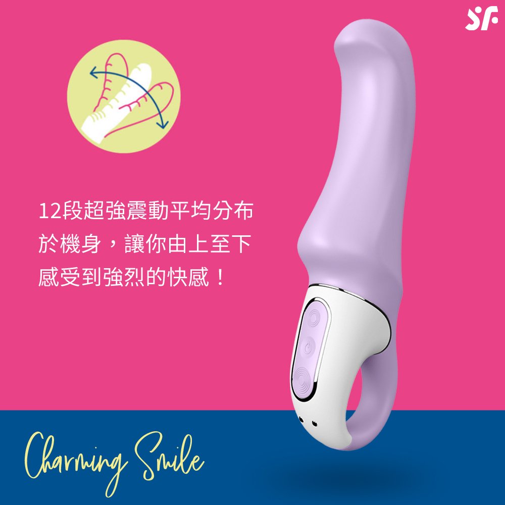 微笑棒是德國satisfyer的系列商品。Satisfyer意指滿足,也就是讓你身體和心靈甚至腦內多巴胺都能滿足的Satisfyer,身為德國情趣大廠,Satisfyer推出一系列功能不同的震動按摩棒,微笑棒是其中一個,迷人的薰衣草色,彎勾造型,柔軟棒體,彎把設計,全機震動,哪一個才能真正的讓你滿呢?
