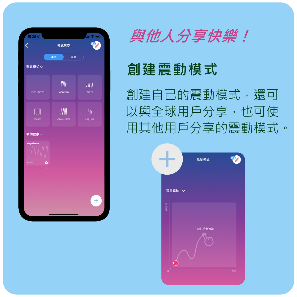 。震動模式:單機具備11種吸吮頻率及11種震動模式,透過 App 開啟無限+模式