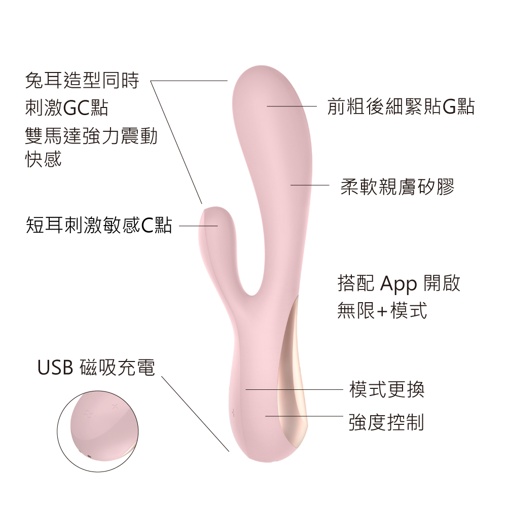 。震動模式:單機具備10種模式及5段強度,透過 App 開啟無限+模式
