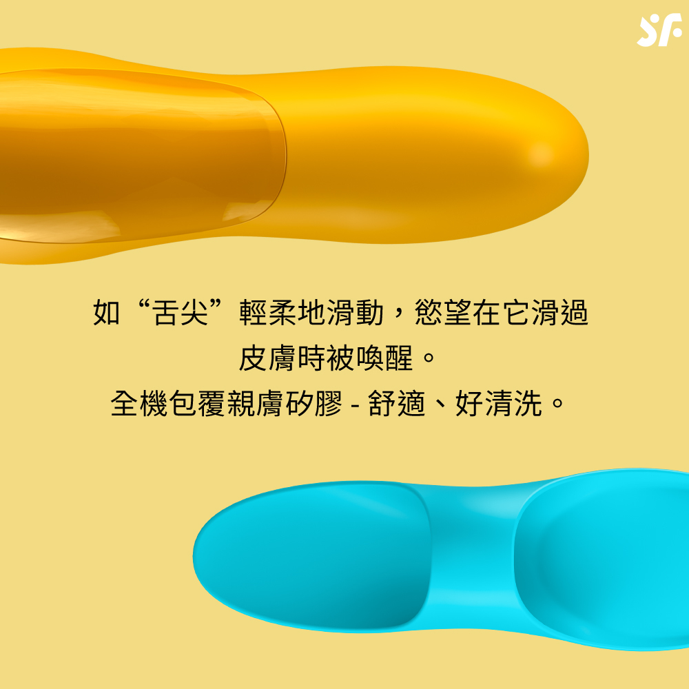 Satisfyer善於開發好看時髦的玩具,與過往情趣用品的設計不同,TEASER用了鮮豔但時尚的顏色做基底,外型看不出與情趣玩具的關聯,假想一個情境,當你與曖昧的伴侶有機會的發生進一步關係,或是與另一半準備今晚來場浪漫的活動,如果擔心貿然拿按摩棒,至少TEASER的外型不讓人反感,也能測試對方在情趣玩具的接納度。
