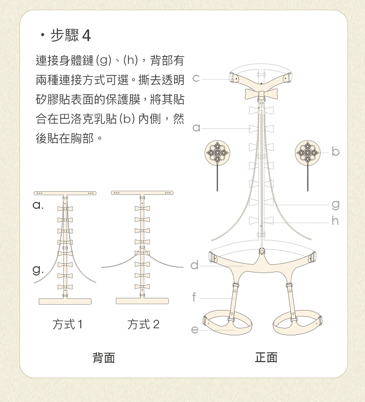 。套裝內含:蝴蝶結後片、巴洛克乳貼