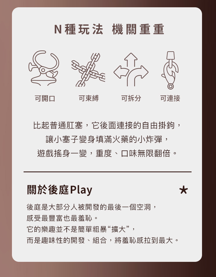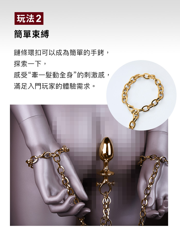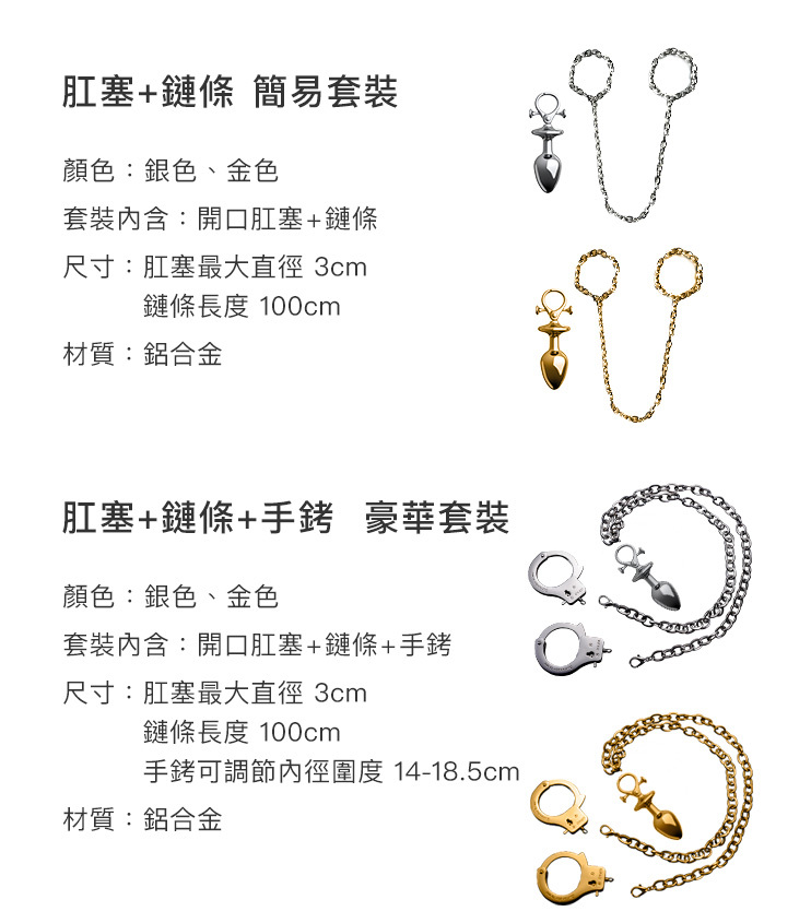 。套裝內容:簡易套裝-開口肛塞、鏈條