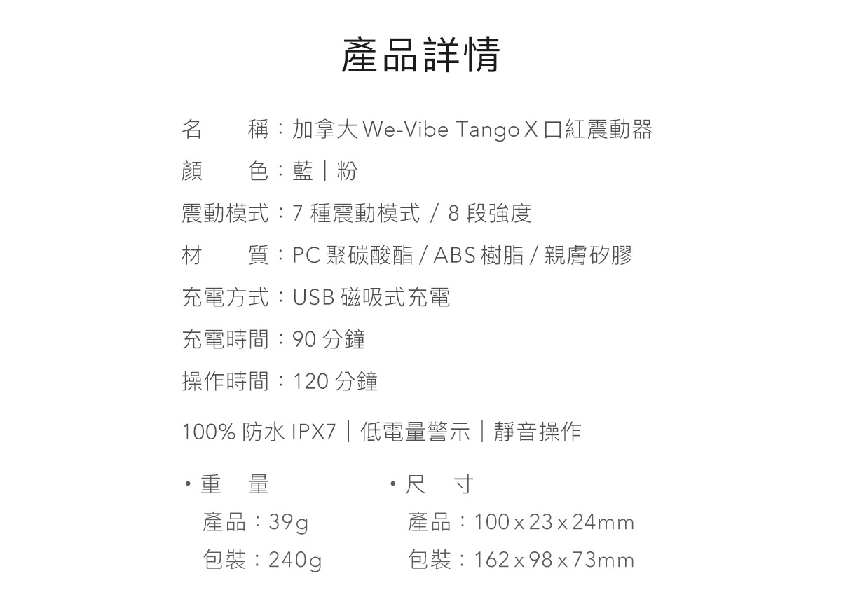 。材 質:親膚矽膠 / ABS / PC