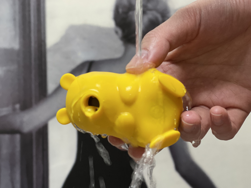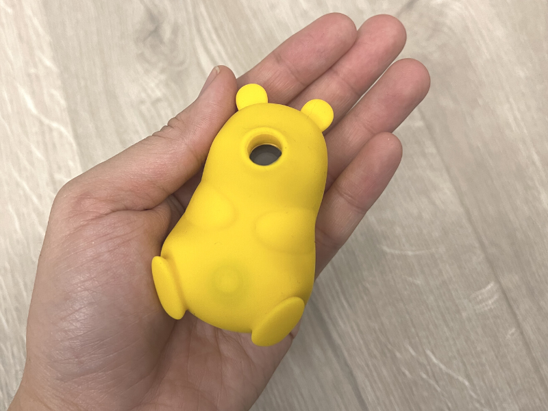 吸吸熊的外層是親膚矽膠,捏著還有一點軟,觸碰你的陰蒂也不會感到不舒服,去除塑膠感帶來的不適,防水的設計你可以在淋浴時享受,或是在泡澡時遊玩,即使是在辦公室的廁所結束一場舒壓的高潮,來到洗手台也只需用清水便可以洗淨,就像前面說的,迷你的吸吸熊在你手掌間,也不會讓人發現你洗的是一個吸吮陰蒂的玩具。